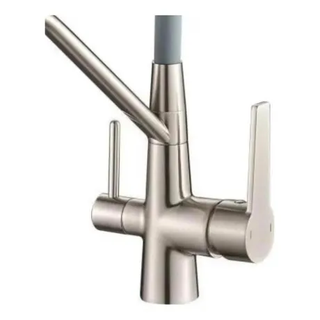 смеситель, комбинированный аэратор для водопроводной и питьевой воды, керамический картридж 35 мм, переключатель питьевой воды, гибкая подводка 1/2, переходник для подключения шланга от фильтра с питьевой водой, металлическая рукоятка, упаковка
