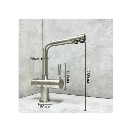 Смеситель для кухни и мойки с высоким поворотным изливом и подключением к фильтру с питьевой водой изготовлен из качественной латуни по технологии литья в песчаную форму, что обеспечивает прочность корпуса смесителя. Благодаря системе 2 в 1, можно подключить фильтр для воды, не делая дополнительных отверстий в мойке или столешнице.