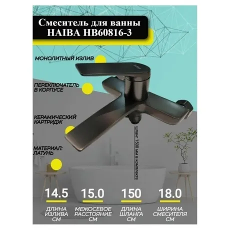Отзывы о товаре Смеситель для ванны Haiba пепельный (HB60816-3)