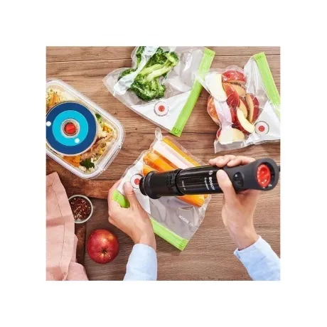 Блендер Bosch MS6CB61V1 — ручная модель из линейки ErgoMixx с системой Fresh Vacuum. Позволяет измельчать, смешивать и хранить продукты дольше благодаря вакуумному контейнеру и пакетам, которые предоставляются в комплекте.