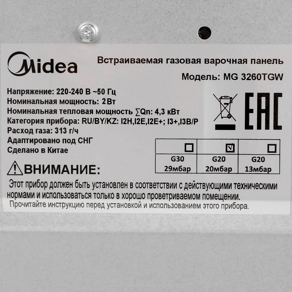 Описание товара Газовая варочная панель Midea MG3260TGW