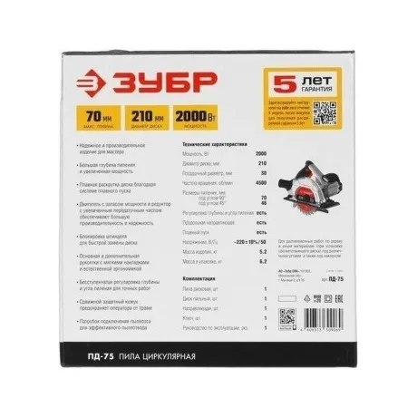 Отзывы о товаре Пила циркулярная ЗУБР (ПД-75)