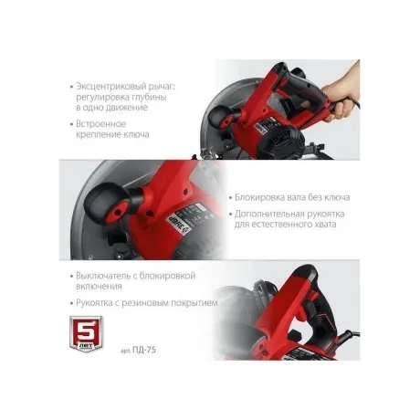 Дисковая пила ЗУБР ПД-75 предназначена для домашних мастеров. Предусмотрена возможностьбесступенчатой регулировки глубины и угла пиленияс удобной шкалой. Пилите без пыли. В корпусе есть патрубок для подключения пылесоса – это помогает сохранять чистоту в рабочей зоне. Плавный пуск обеспечивает аккуратное начало работы. Улучшенная конструкция с более мощным двигателем обеспечивает пиление на глубину до 70 мм, что позволяет резать фанеру, панели и доски большинства типоразмеров, а также некоторые виды бруса. Эргономика рукояток делает работу удобной, а запас мощности и точность реза дарят удовольствие от работы.