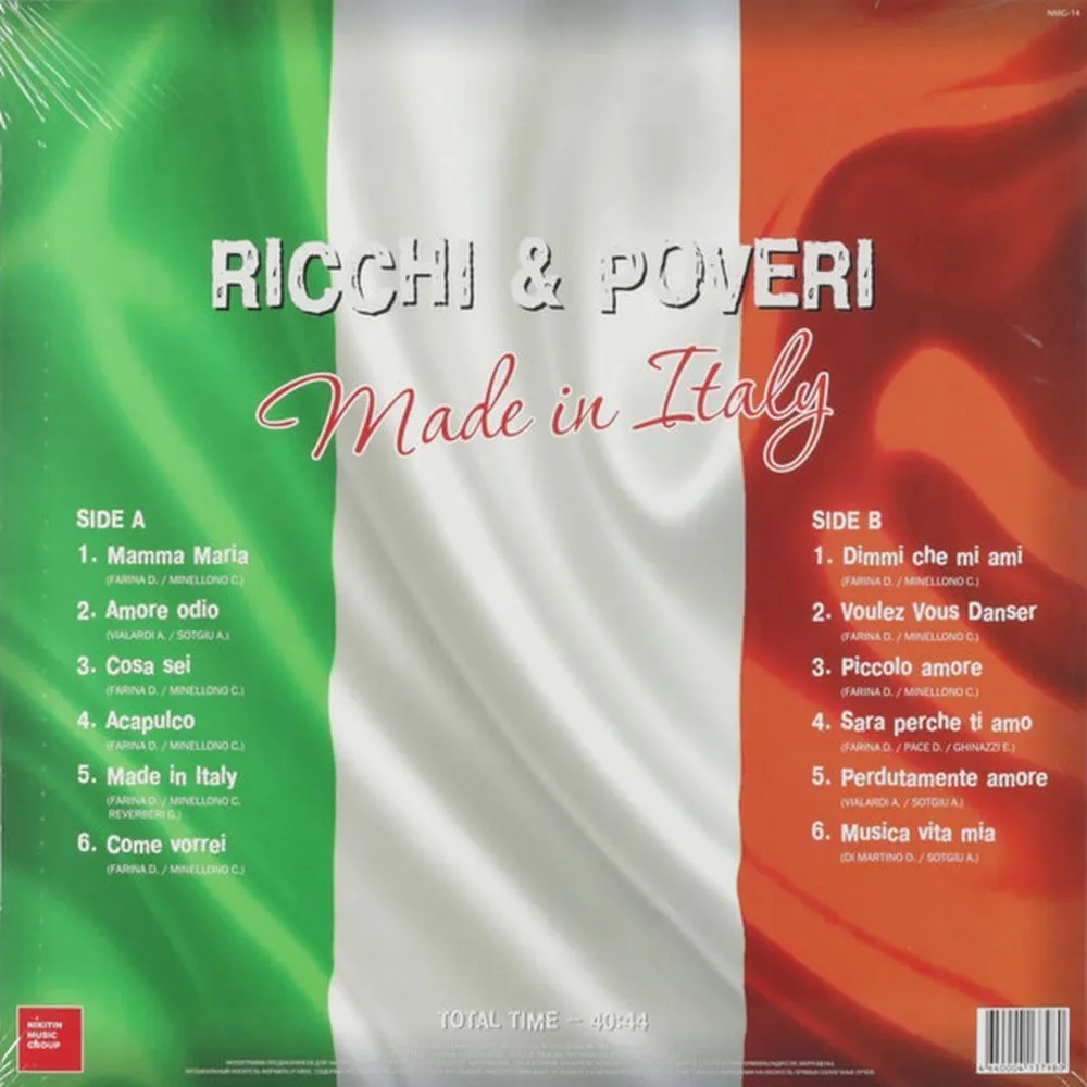 Представляем вам виниловую пластинку Итальянской поп-группы Ricchi & Poveri под названием «Made in Italy». В альбом вошли такие супер -хиты как сингл «Мата Maria» и «Made in Italy». Данная пластинка позволит вам окунуться в атмосферу диско и танцевальной музыки и никого не оставит равнодушным.