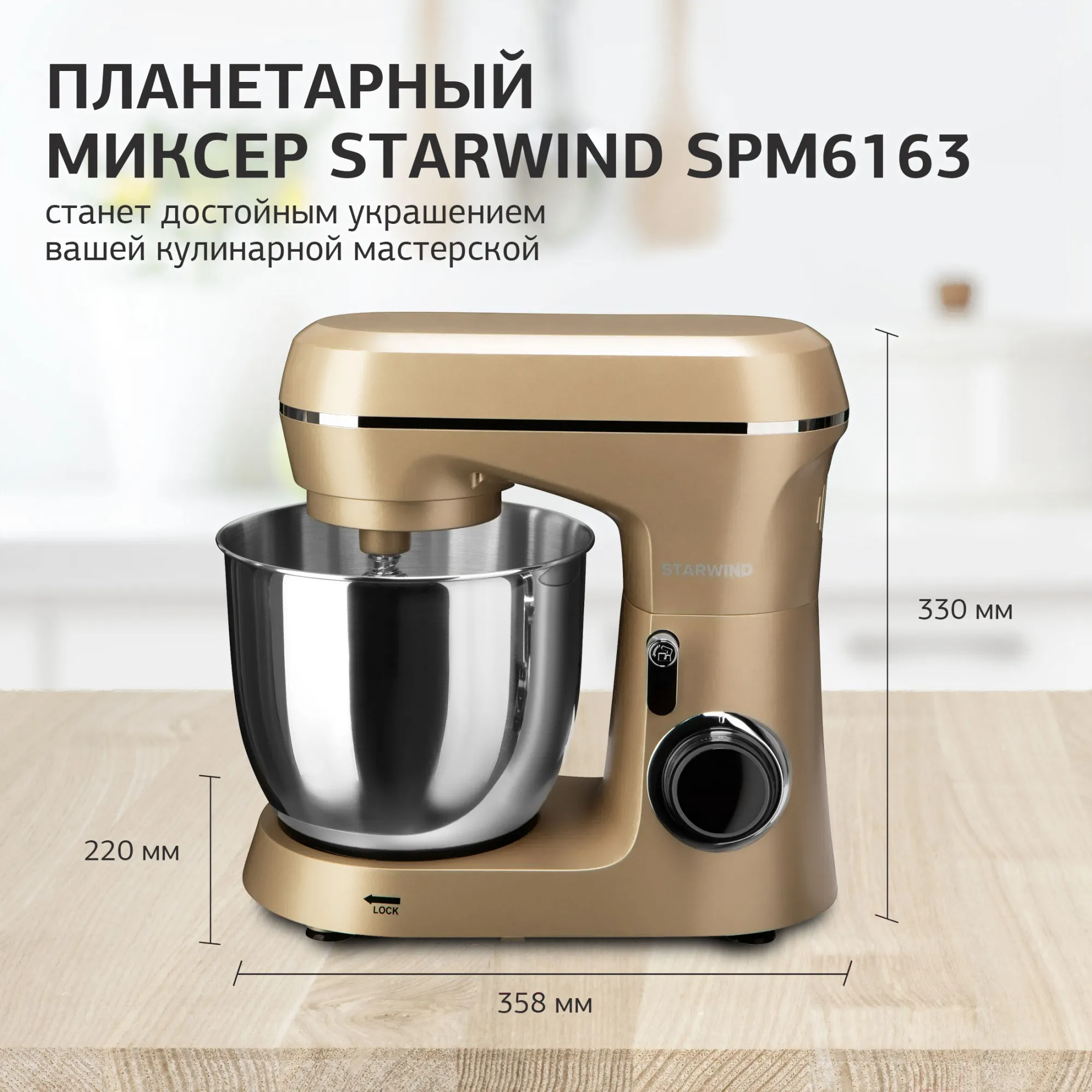 Миксер планетарный Starwind SPM6163 1300Вт золотистый - этот товар вы можете купить в нашем интернет-магазине по цене 8311 руб. Цены, фото и описания представлены на карточке товара. Звоните по телефону 8(812)426-98-99 в Омске.