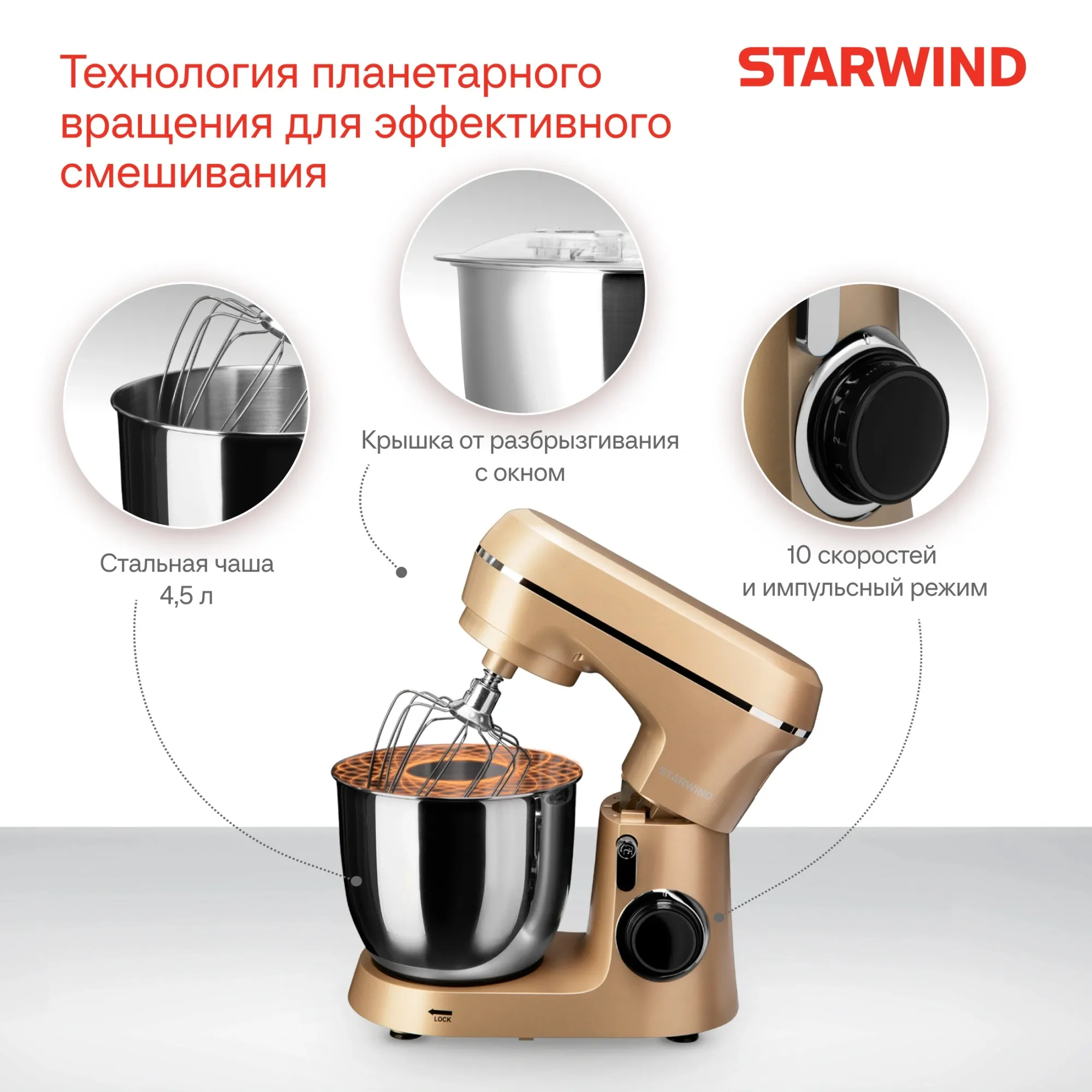 Отзывы о товаре Миксер планетарный Starwind SPM6163 1300Вт золотистый