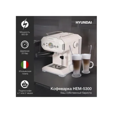 Описание товара Кофеварка рожковая Hyundai HEM-5300 850Вт бежевый/серебристый