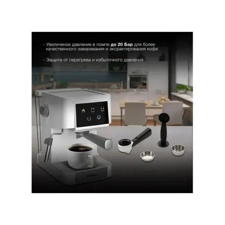 Описание товара Кофеварка рожковая Hyundai HEM-3203 1000Вт белый/серебристый