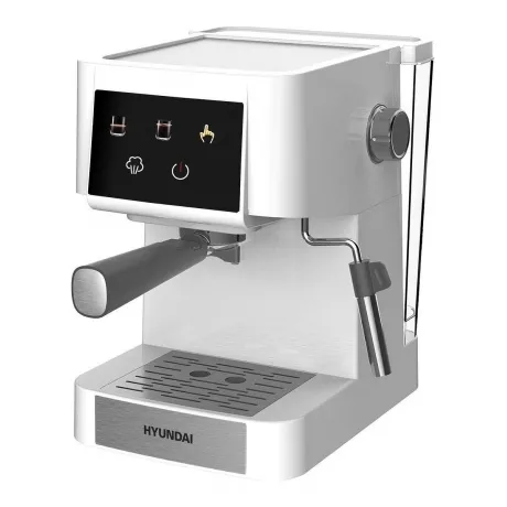 Рожковая кофеварка Hyundai HEM-3203 с электронным управлением позволит легко и быстро сварить крепкий эспрессо и при желании превратить его в капучино или флэт-уайт при помощи встроенного ручного капучинатора. Сенсорная панель с пятью цветными кнопками-индикаторами для выбора режимов делает управление кофеваркой максимально простым и удобным. Подогреваемая верхняя панель для нагрева чашки, чтоб не допустить быстрого остывания кофе после налива. Два фильтра-сита и мерная ложка-темпер в комплекте избавляют от необходимости приобретения дополнительных аксессуаров и упрощают процесс приготовления. Рожковая кофеварка с ручным капучинатором Hyundai HEM-3203 раскрывает широкие возможности для приготовления напитков из молотых кофейных зерен.