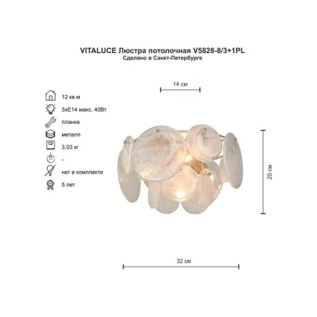 Отзывы о товаре Люстра V5828-8/3+1PL, 4xE14 макс. 40Вт