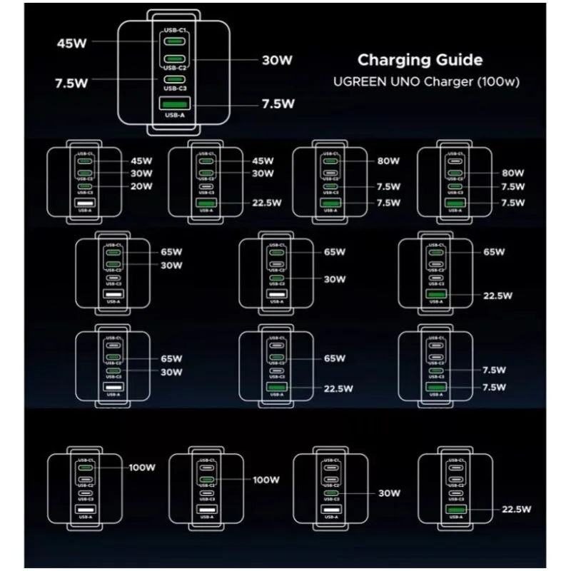 Зарядное устройство UGREEN X688 мощностью 100 Вт поддерживает самые популярные протоколы быстрой зарядки. Устройство выполнено на основе нитрида галлия (GaN), что обеспечивает более стабильную зарядку, более эффективное охлаждение и меньший размер по сравнению с традиционными зарядными устройствами.