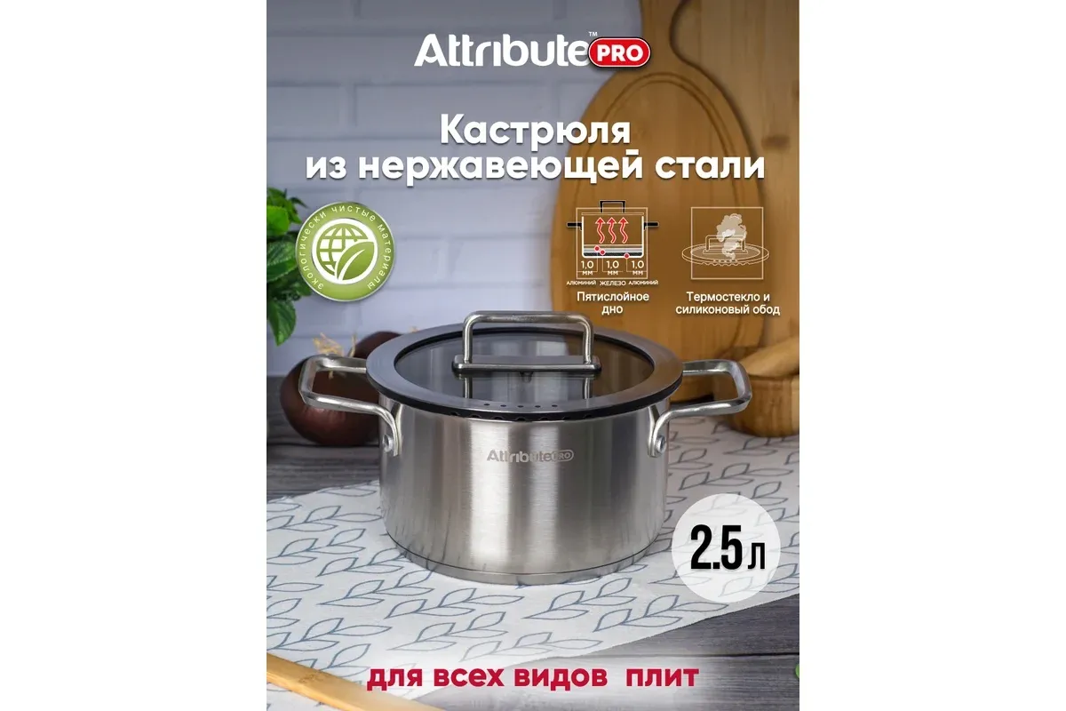 Кастрюли ARGENTO из нержавеющей стали 18/10 с утолщённым дном и стенками — это универсальная и функциональная посуда для вашей кухни.