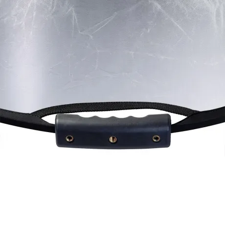 Односторонний круглый отражатель, цвет - серебристый. Диаметр 82 см, используется в предметной и портретной съемке, а также для подсветки отдельных участков кадра. Серебристая поверхность отражателя используется для отражения жестким светом, что позволяет получать контрастное изображение с четкими тенями. Высокий коэффициент отражения делает эту поверхность одной из часто используемых, найдет применение даже в пасмурную погоду. Стальной упругий каркас прошит по периметру капроновым карманом, диаметр отражателя в сложенном виде – 30 см. Две рукоятки, закрепленные на каркасе, оборудованы отверстиями с резьбой 1/4, что позволяет закрепить отражатель на штативах, стойках или любых других опорах, без использования специального держателя.