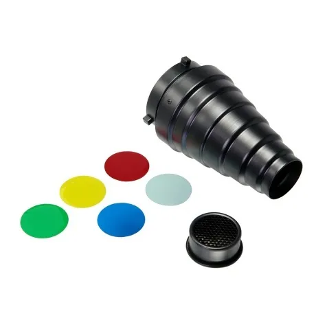 Насадка коническая Falcon Eyes FEA-BW изготовлена из металла и представляет собой тубус с байонетом Bowens. Позволяет получать узконаправленный луч света для создания светового или цветового акцента на объекте съемки или фоне и обеспечивает широкие творческие возможности в съемке. Длина насадки 20,5 см, диаметр выходного отверстия 56 мм. В комплекте цветные фильтры и сотовая насадка.