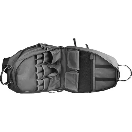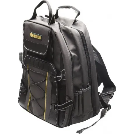 Рюкзак для инструментов Kraftool применяется для переноски разнообразного инструмента, необходимого при проведении ремонтно- монтажных работ. В качестве материала в сумке использован высококачественный полиэстер, обладающий высокой плотностью. Устойчив к воздействию влаги. Легко очищается от загрязнений. Обладает повышенной устойчивость к истиранию. Два внутренних отделения на молнии: отделение для крупного инструмента и расходных материалов, а также отделение для мелкого инструмента. Предусмотрен специальный крепеж для переноски уровня.