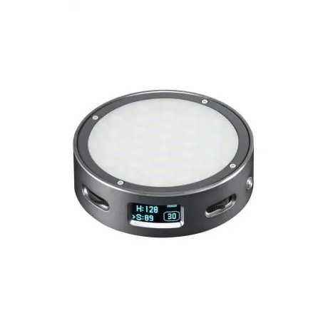 66 светодиодов (18х2 bi-color + 30 RGB). Цветовая температура от 2500 до 8500К, регулируемая мощность от 0 до 100%. Режимы работы bi-color, RGB(HIS), 14 спецэффектов (39 разновидностей световых сценариев: полицейская машина, мерцание свечи, дискотека, режим светомузыки в реальном времени и др.). Магнитный металлический корпус, сферический диффузор, адаптер для крепления в горячий башмак, на штатив с резьбой 1/4.