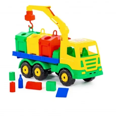 Яркая игрушка, предназначенная для перевозки цветных контейнеров. Ребёнок в игровой форме изучает цвета и развивает моторику рук. Автомобиль станет отличным дополнением автопарка малыша. На машине установлен поворотный манипулятор с крюком. При помощи манипулятора ребёнок сможет загружать и снимать контейнеры с платформы автомобиля. Все контейнеры оборудованы открывающейся крышкой. Игрушка позволяет перевозить различные мелкие грузы. Также автомобиль-контейнеровоз можно использовать как эвакуатор. На игрушке установлена откидывающаяся платформа. Внутри контейнеров имеются пластиковые детали, имитирующие разные виды мусора. Серия автомобилей «Престиж» знакомит детей с различными механизмами, трудовыми процессами, развивают фантазию и пространственное мышление.