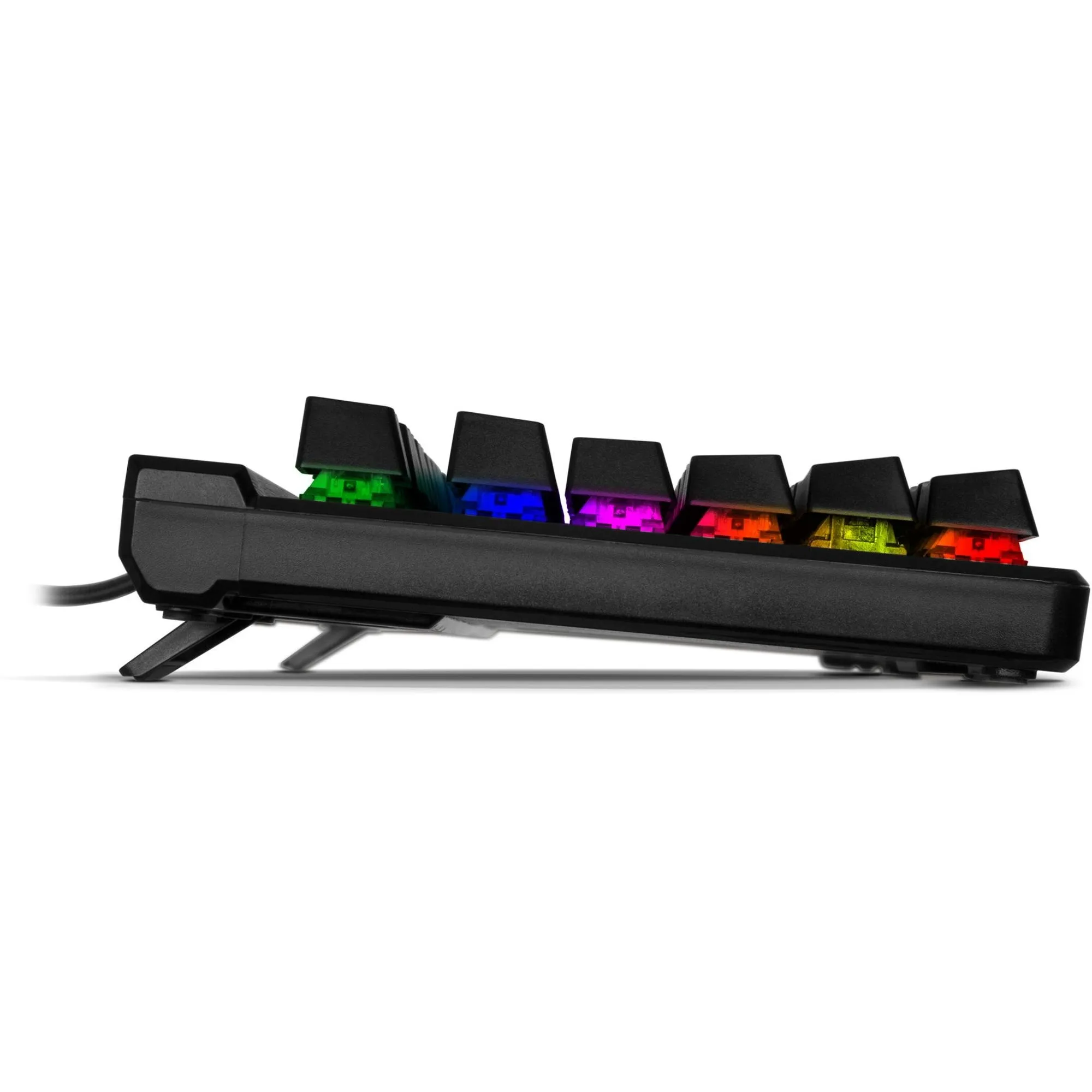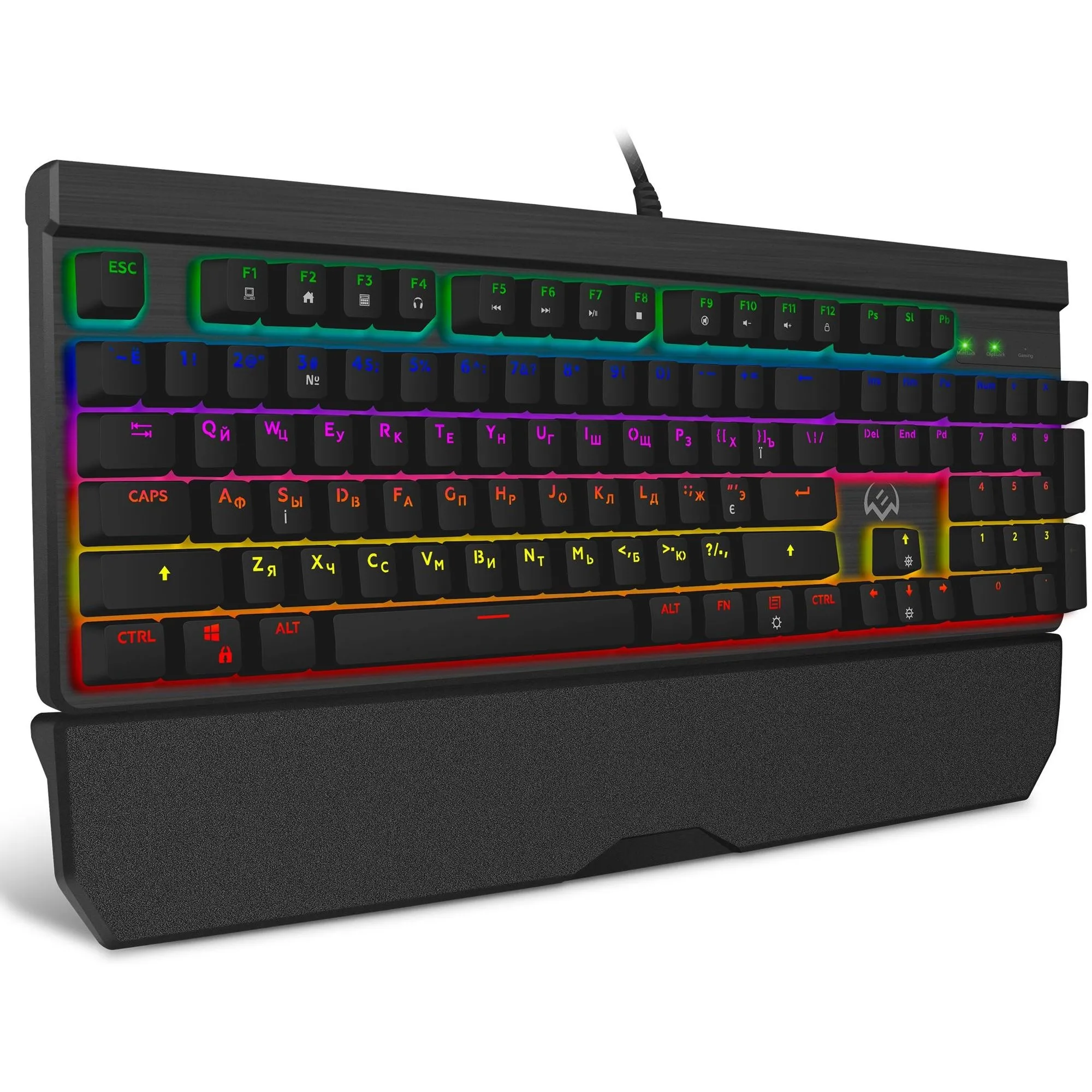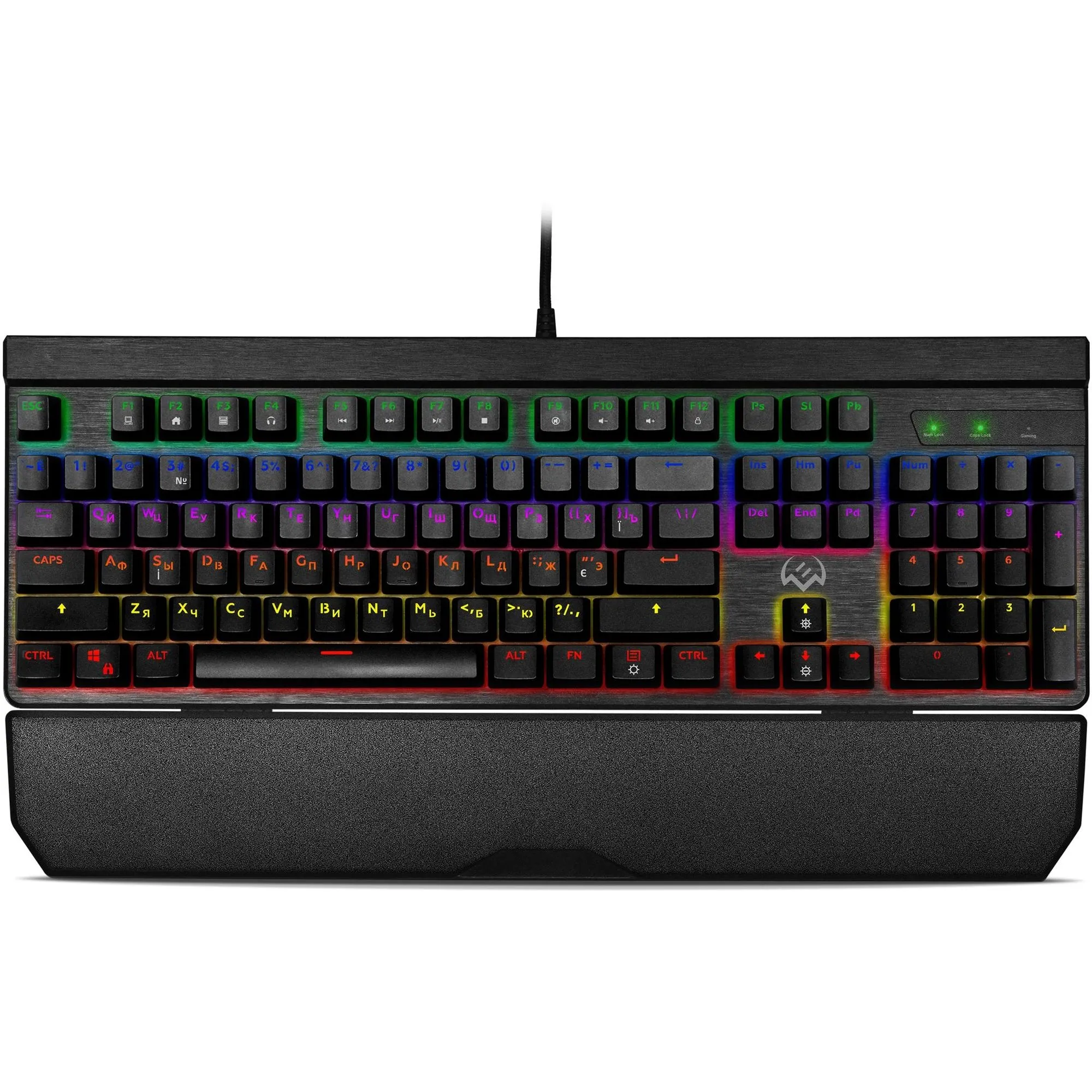 Sven KB-G9500 - механическая проводная клавиатура с переключателями Outemu Blue, делающими клавиатуру крайне интересной для киберспортсменов, предпочитающих кнопки с четким ощутимым кликом. Максимальной эффективности действий помогут добиться настраиваемые клавиши, а полное погружение в игровую атмосферу обеспечит разноцветная подсветка. С помощью ПО можно запрограммировать каждую клавишу, расширив её функционал на своё усмотрение. Съемная подставка под запястья даст возможность оставаться в форме даже после многочасовых игровых сессий, а функция отключения клавиши Win спасет от неприятных неожиданностей.