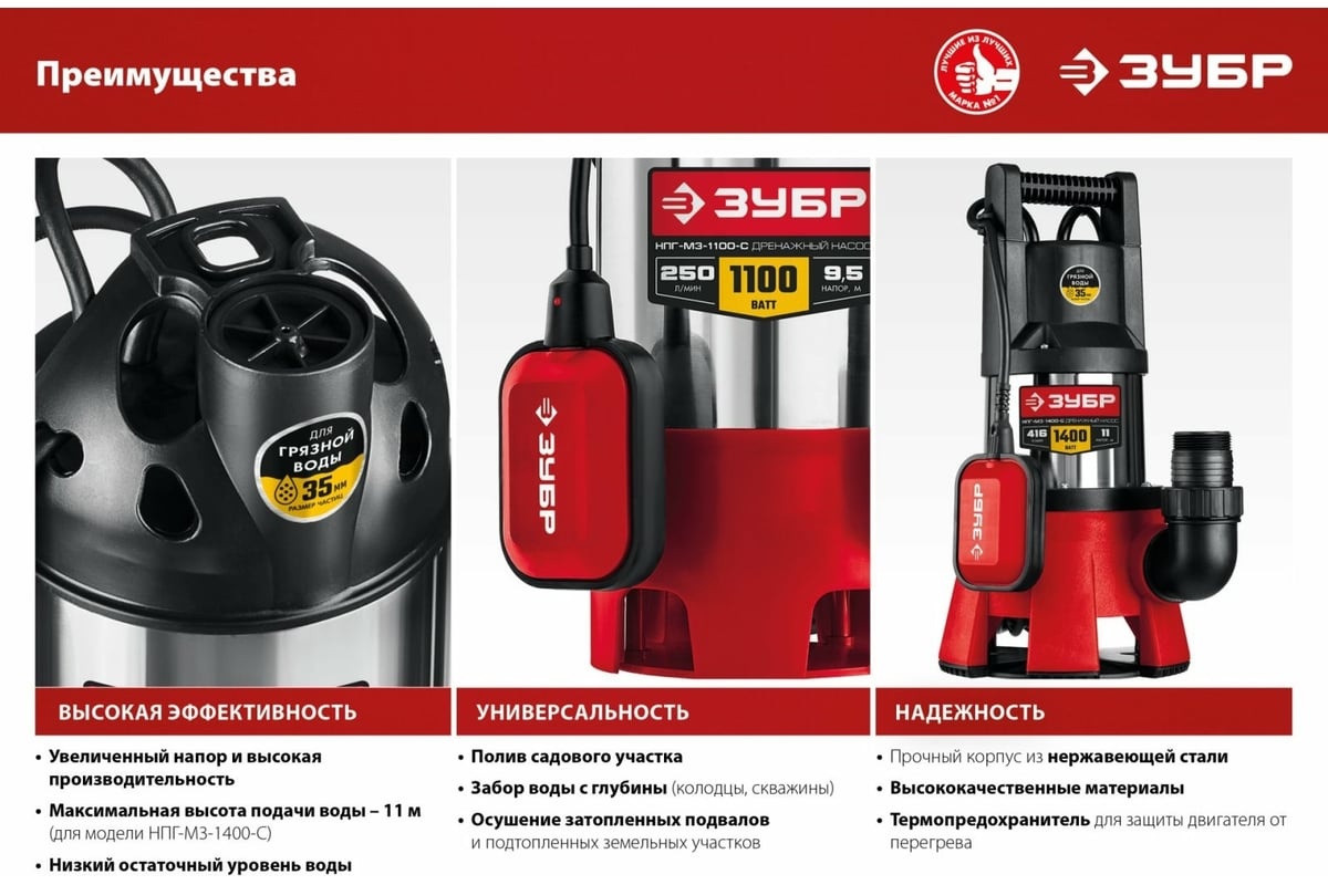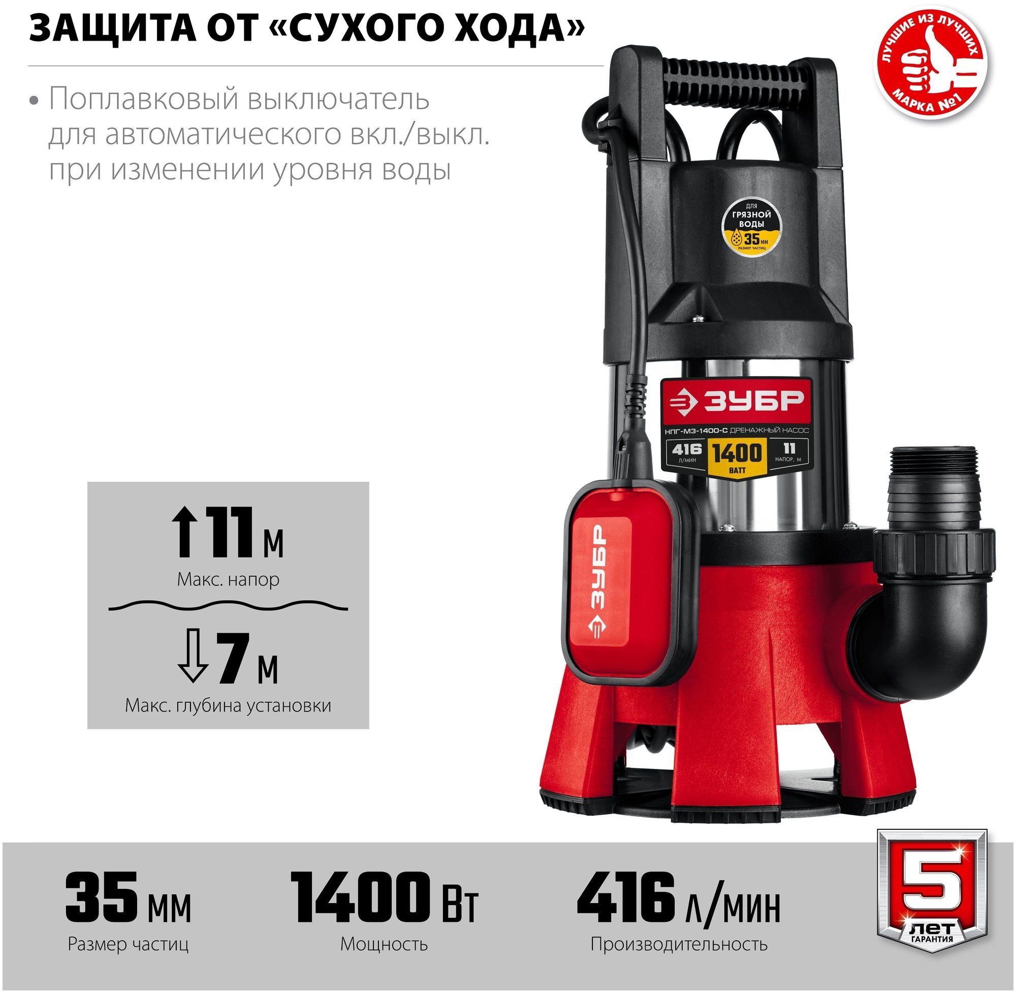 Отзывы о товаре Насос погружной дренажный ЗУБР НПГ-М3-1400-С