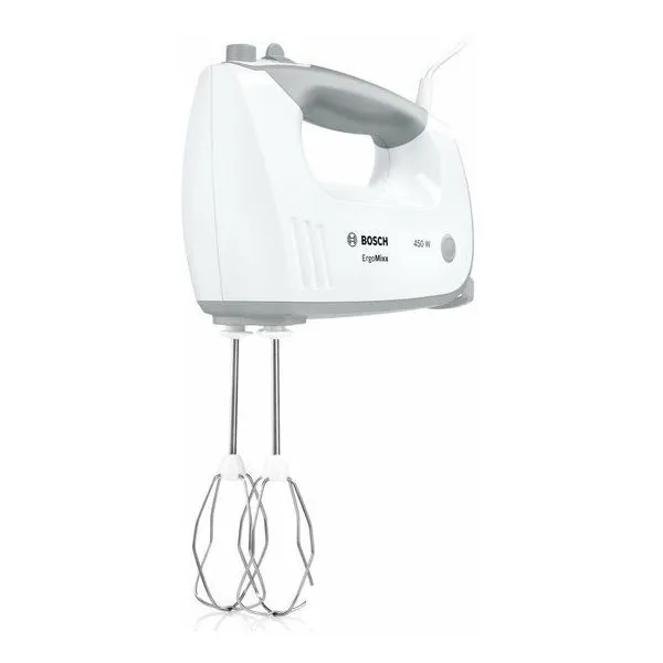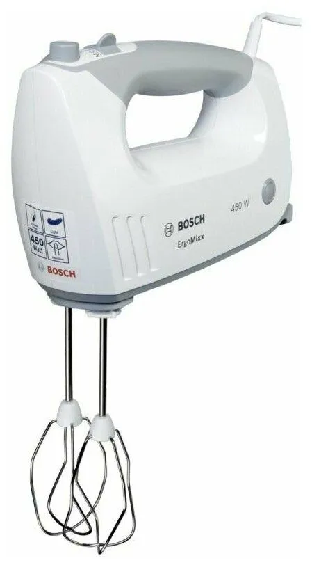 Миксер Bosch MFQ 36400 выполнен из высококачественного пластика белого цвета. В комплект входит насадка-венчик для блюд легкой и средней текстуры.Спиралевидная насадка-крюк предназначена для приготовления густого теста на пельмени. Насадки удобно снимаются с помощью специальной кнопки на ручке прибора.
