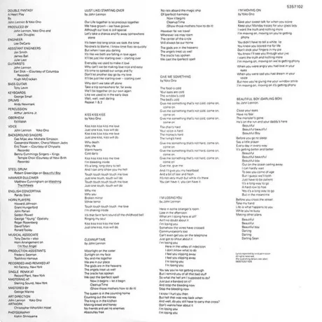 (Just Like) Starting Over, Kiss Kiss Kiss, Cleanup Time, Give Me Something, Im Losing You, Im Moving On, Beautiful Boy (Darling Boy), Watching The Wheels, Im Your Angel, Woman, Beautiful Boys, Dear Yoko, Every Man Has A Woman Who Loves Him, Hard Times Are Over