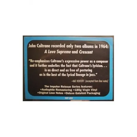 John Coltrane - Crescent (0011105020015) виниловая пластинка - стоимость товара 4726 руб. Описание товара содержит: цены, фото и основные характеристики. Данный товар так же можно заказать по телефону 8(812)426-98-99 в Перми. В интернет-магазине КотоФото можно оформить заказ с доставкой, либо самостоятельно забрать товар в пункте самовывоза.