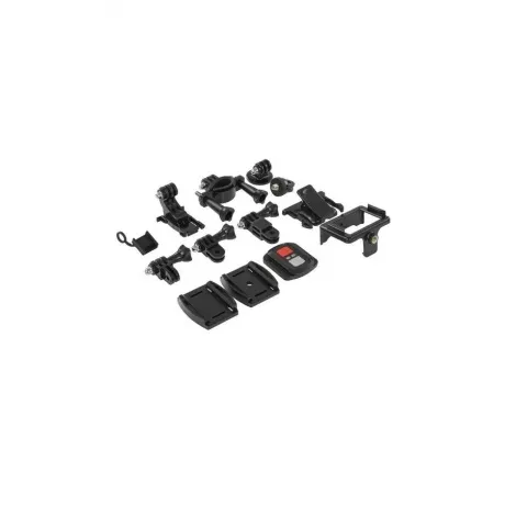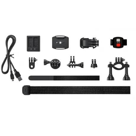 AKASO EK7000 Action Camera, пульт управления, 1050 мАч аккумулятор, ЗУ для аккумуляторов, влагозащищенный чехол, крепление для велосипеда, различные крепления, фиксаторы, крепления для шлема, ремешок, стяжки, задняя защитная крышка, microUSB кабель, Quick Reference Guide