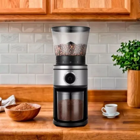 Жерновая кофемолка КТ-7246 предназначена для помола кофейных зёрен. Она имеет конические жернова из нержавеющей стали. Кофемолка даёт равномерный помол и позволяет настроить его степень: от мелкого - для эспрессо кофеварки, до крупного - для френч-пресса. Поворотом регулятора можно настроить количество порций кофе. Вы можете выбрать 212 порций, 1 порция равна чашке эспрессо. От порций зависит время работы. Можно настроить помол: от мелкого - для эспрессо кофеварки, до крупного - для френч-пресса. На регулятор помола нанесена специальная шкала. Для регулировки помола поворачивайте регулятор помола так, чтобы указатель на моторном блоке был направлен на нужную вам степень помола. Конические жернова - это два конуса, один в другом. Внешний конус неподвижный, а внутренний вращается. Зерно, между жерновами, перемалывается, продвигаясь вниз, так они не перегреваются. Кофемолка намелет нужное количество кофе и автоматически выключится. Контейнеры для молотого кофе ёмкостью 150 г и для зерен ёмкостью 300 г съёмные. Внешний жернов также съёмный для удобства очистки. Для чистки жерновов в комплекте идет удобная щёточка. Кофемолка КТ-7246 оснащена переключателем безопасности: она не включится, если контейнер для зерен не установлен. В случае перегрева двигателя сработает защита и отключит его. Нескользящие ножки делают прибор более устойчивым на поверхности.