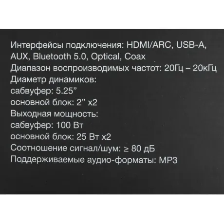 Описание товара Саундбар Hyundai H-HA630 2.1 50Вт+100Вт черный