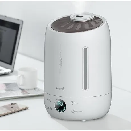 Увлажнитель воздуха Deerma Humidifier F630 – это тот прибор, без которого не обойтись семьям с детьми. С его помощью вы сможете получить комфортные показатели влажности в помещении для свободного и здорового дыхания. Обладая мощностью 25 Вт, прибор будет эффективен в помещении площадью 30 м?. Deerma Humidifier F630 содержит внутреннюю емкость на 5 л и расходует за час 280 мл воды. Ультразвуковой увлажнитель поддерживает функцию ароматизации, что позволяет не только создать комфорт при оптимальной влажности, но и наполнить комнату приятными ароматами. Он предусматривает регулировку направления увлажнения и интенсивности испарения, дает возможность установить таймер и выключается автоматически по истечении заданного времени работы. Благодаря отображению параметров воздуха – влажности и температуры – на дисплее с подсветкой вам будет легче управлять устройством. Для этого предусмотрена сенсорная панель. Можно регулировать влажность автоматически или в ручном режиме.