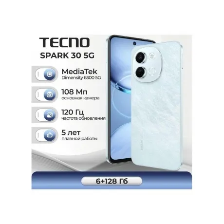Описание товара Смартфон Tecno Spark 30 6/128Gb Azure Sky