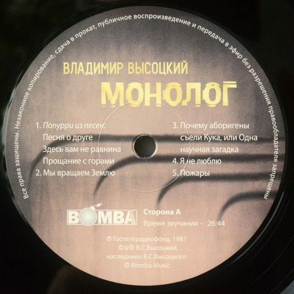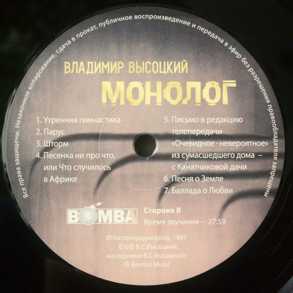 Отзывы о товаре Высоцкий Владимир - Монолог (4680068801274) виниловая пластинка