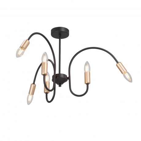 люстра потолочная vitaluce v3026-1/6pl на шесть ламп под цоколь e14 в стиле лофт будет прекрасным дополнением для интерьера, выполнена из металла, цвет черный матовый с золотом, максимальная мощность лампы 40 вт, ширина 73 см, подходит для создания теплого белого света.