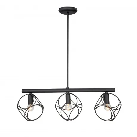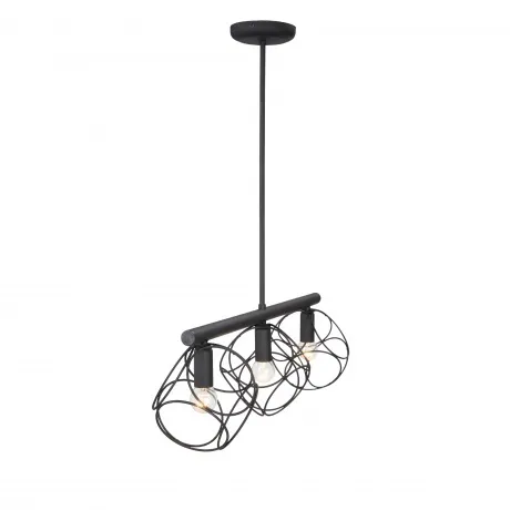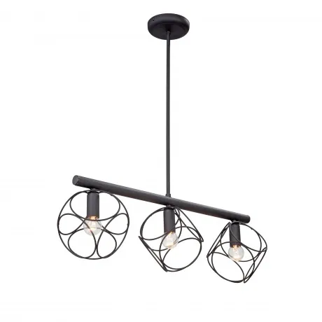 потолочная люстра в стиле лофт с тремя плафонами, цоколь e14, максимальная мощность каждой лампы 40 вт. корпус выполнен из металла черного цвета, общая высота конструкции 72 мм. подходит для помещений с площадью освещения до 10 м?, рабочее напряжение 220в. дизайн минималистичный с элементами индустриального стиля, подходит для современных интерьеров.