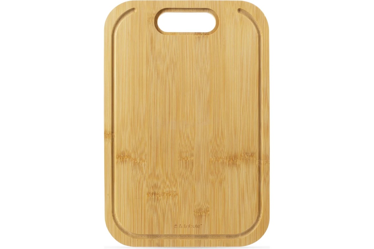 Разделочная доска должны быть на каждой современной кухне. Вы можете выбрать подходящий размер такого аксессуара для кухни или приобрести доски разных размеров. Разный размер досок помогает шинковать и резать отдельные группы продуктов, соблюдать гигиену при использовании сырых и вареных продуктов. Разделочная доска из бамбука отлично подходит для нарезки самых разных продуктов. Это могут быть сырое мясо, рыба, овощи, готовая пища. Кроме того, подобные изделия из бамбука можно считать многофункциональными, так как на них можно без опасения ставить горячие кастрюли, сковороды и использовать их в качестве подставки. Стоит отметить, что такой кухонный аксессуар из бамбука совершенно не боится перепада температур. Разделочной доской из бамбука очень удобно пользоваться, она легкая, гладкая, долговечная. Доска может стать украшением интерьера кухни, а не только практичным аксессуаром. Благодаря тому, что это довольно-таки прочный и износостойкий материал, такая доска длительное время не утратит свой первоначальный вид. Бамбуковая посуда прекрасно подойдет для подачи различных блюд и в качестве сервировочной сырной доски для вина, закусок, пиццы, канапе, суши и роллов, мяса, сыра, стейка, шашлыка, фруктов или овощей, а также может быть использована в качестве подставки для горячего, столика-подноса для завтрака в постель. Поверхность нашего кухонного аксессуара оснащена неглубоким желобком по краям.