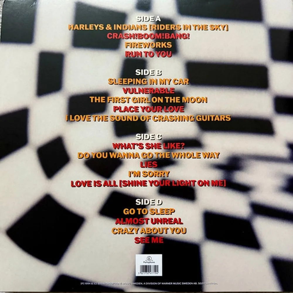 Harleys & Indians (Riders In The Sky), Crash! Boom! Bang!, Fireworks, Run To You, Sleeping In My Car, Vulnerable, The First Girl On The Moon, Place Your Love, I Love The Sound Of Crashing Guitars, What’s She Like?, You Wanna Go The Whole Way?, Lies, I’m Sorry, Love Is All (Shine Your Light On Me), Go To Sleep, Almost Unreal, Crazy About You, See Me