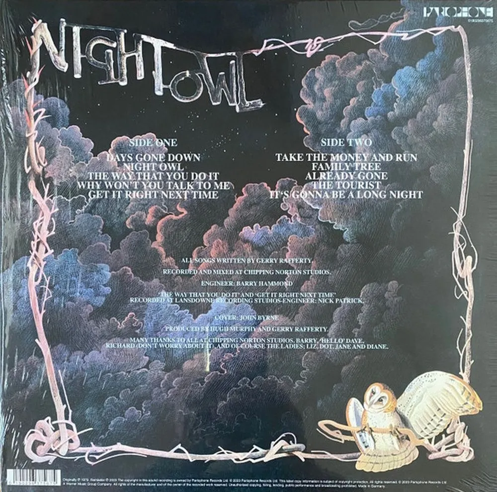 Альбом "Night Owl" Gerry Rafferty был выпущен в 1979 году и стал продолжением его успешной карьеры. Этот альбом демонстрирует характерный стиль Rafferty, сочетающий элементы поп-рока и фолка. В нем присутствуют мелодичные композиции, которые отражают личные переживания и социальные темы, что стало визитной карточкой исполнителя. В "Night Owl" можно услышать такие известные треки, как "Days Gone Down" и "The Royal Mile". Эти песни выделяются своей лирикой и гармоничными мелодиями, которые подчеркивают вокал Rafferty. Альбом был записан в условиях, когда артист стремился к экспериментам с музыкальными жанрами и звуковыми текстурами, что делает его интересным для анализа с точки зрения музыкальной эволюции исполнителя. Производство альбома было осуществлено на студии, где Rafferty работал с различными музыкантами и продюсерами. Это сотрудничество позволило создать более насыщенное и разнообразное звучание. Несмотря на то, что "Night Owl" не достиг такой же коммерческой популярности, как его предшественник "City to City", он все же занял свое место в дискографии артиста и получил признание среди поклонников.