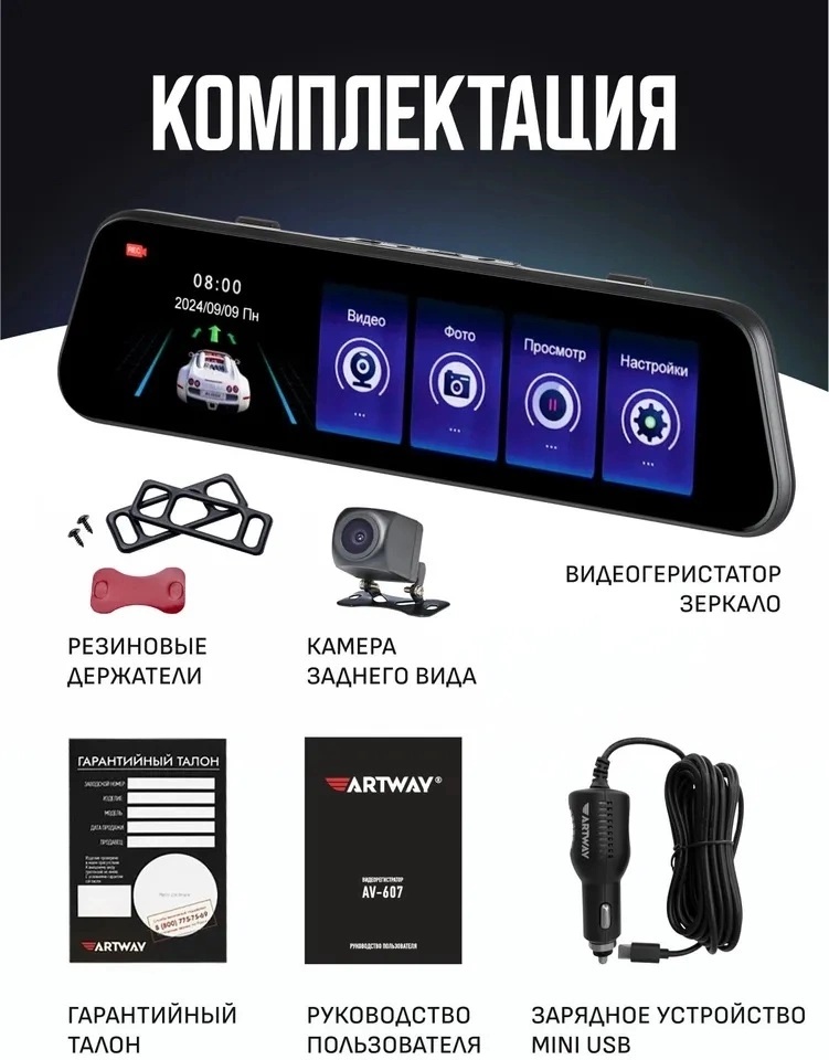 Описание товара Видеорегистратор зеркало Artway AV-607