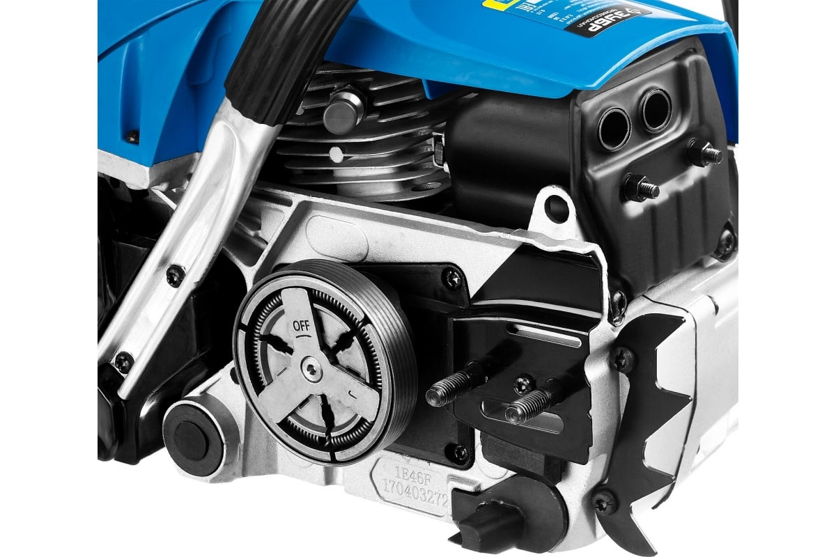Идеальный вариант для пиления досок, бруса, стволов различных пород дерева на дачном участке. В отличие от электрической, бензиновая пила оснащена более мощным двигателем, безопасна в отношении поражения электрическим током, может работать в любую погоду и в любом месте. Функции легкого запуска, автоматической смазки цепи и эффективная антивибрационная защита делают пилу легкой в обращении и комфортной в работе. Двойной тормоз цепи, приводимый в действие при откидывании защитного щитка или при отпускании клавиши блокировки на рукоятке, а также встроенный цепеуловитель и металлический упор делают пилу безопасной в применении. Большая удельная мощность, высокое качество применяемых материалов и изготовления, обеспечивающие увеличенный ресурс, делают бензиновую пилу ЗУБР Вашим лучшим помощником.