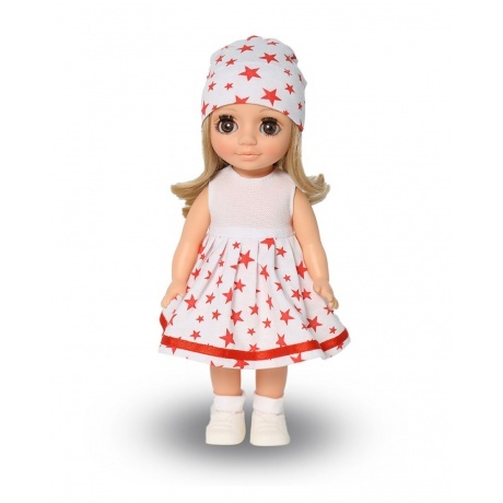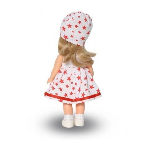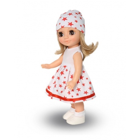 Кукла Ася станет лучшей подружкой для вашей девочки. Ее выразительные, широко распахнутые глаза и обаятельная улыбка создают образ доброй и нежной малышки. Кукла представлена в летнем комплекте одежды. Элегантное и милое платье, отстроченное тесьмой по подолу. Подобранные в тон шапочка, носочки и туфельки.