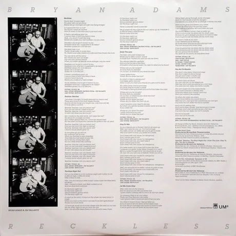 Bryan Adams - Reckless (0602537830596) виниловая пластинка - этот товар вы можете купить по цене 5329 руб. в интернет-магазине КотоФото. Характеристики, описание товара, фото и цена представлены на карточке товара. Заказать товар вы можете по телефону 8(800)505-43-75 в Ростове-на-Дону.