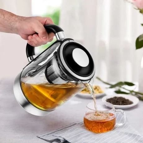 Чайник очень понравился. Стильный , красивый дизайн. Наличие широкого горла облегчает уход за ним. Взозможность заваривать чай непосредственно в нём ,тоже лишней не будет. Подогрев до нужной температуры экономит наше время и упрощает нам жизнь. Я довольна покупкой!