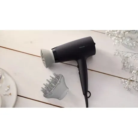 Насадка ThermoProtect с уникальной конструкцией смешивает теплый и холодный воздух для бережной сушки волос. Этот фен мощностью 1600 Вт создает оптимальный воздушный поток для достижения великолепных результатов день за днем. Насадка ThermoProtect с уникальной конструкцией смешивает теплый и холодный воздух для бережной сушки волос. Сушите волосы быстро даже при температуре на 10°C ниже. Этот фен имеет 3 предустановленных режима скорости/нагрева, благодаря которым можно легко и быстро сделать идеальную прическу. Режим холодного обдува позволяет зафиксировать прическу с помощью струи холодного воздуха. Благодаря равномерному распределению воздушного потока насадка-диффузор придает волосам дополнительный объем и уменьшает их спутывание. Для наилучших результатов поместите диффузор около теменной области, ближе к корням волос: пальчики диффузора помогут придать волосам объем, упругость и создать локоны.