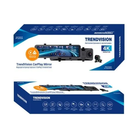 TrendVision CarPlay Mirror 2-камерный автомобильный видеорегистратор-зеркало с качеством съёмки 4К или реальным 2К. Благодаря современной технологии Apple CarPlay и Android Auto можно транслировать приложения со смартфона прямо на большой сенсорный IPS экран устройства. Все это дополнено обширным классическим функционалом подобного вида устройств TrendVision и гибкой настройкой большого количества параметров. (ВНИМАНИЕ!) Для работы функций CarPlay и Android Auto на телефоне должна быть оформлена подписка Яндекс Плюс.