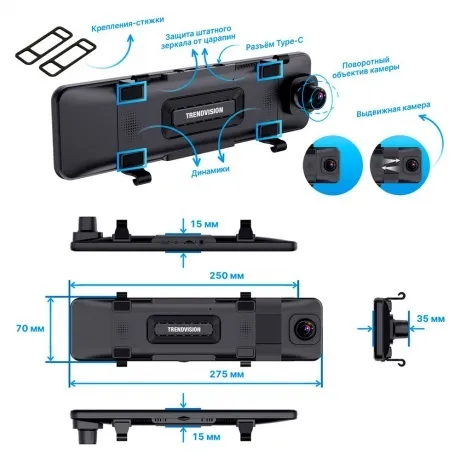 Описание товара Видеорегистратор-зеркало TrendVision CarPlay Mirror