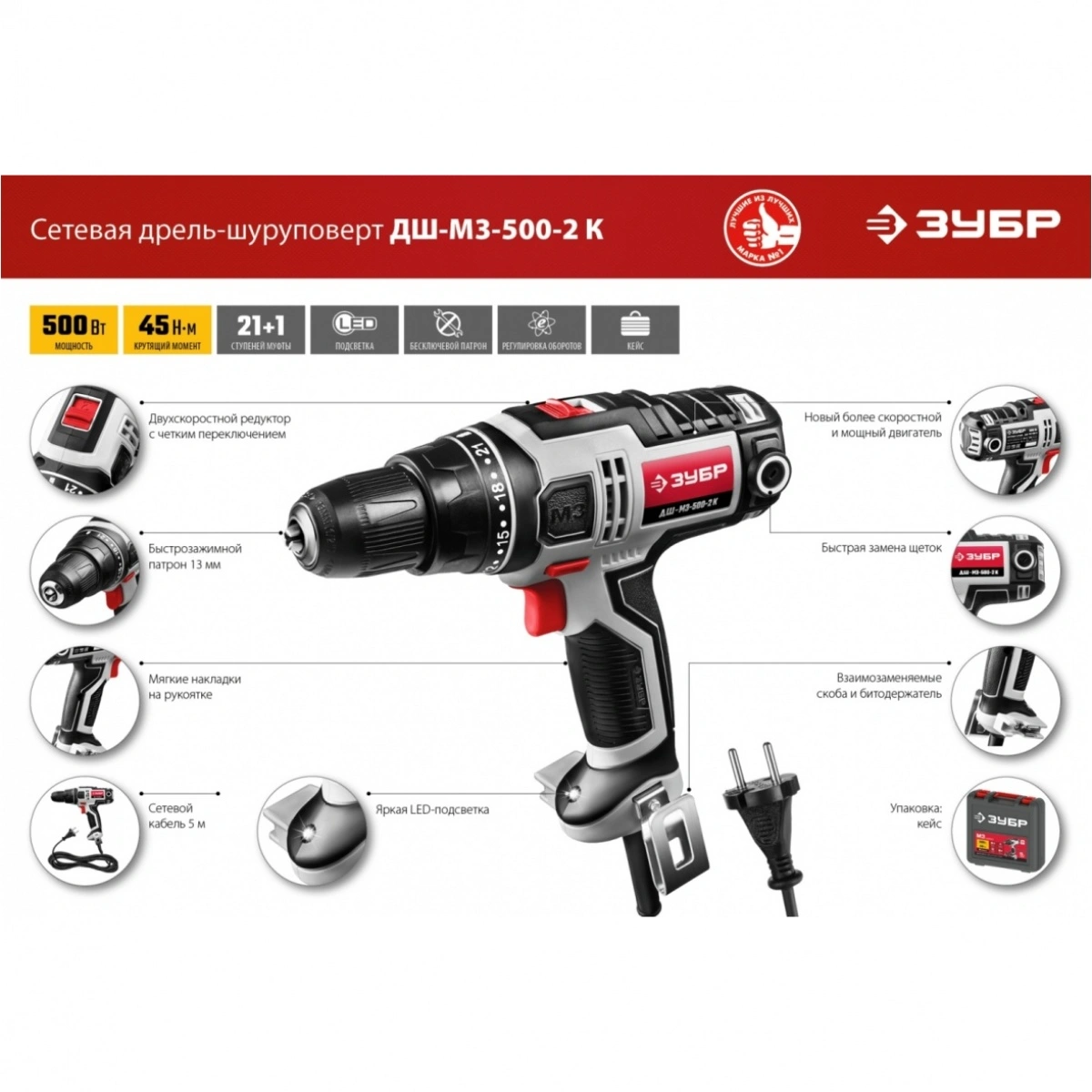 Отзывы о товаре Дрель-шуруповерт сетевая ЗУБР 500 Вт, 45 Н·м, кейс, (ДШ-М3-500-2 К)