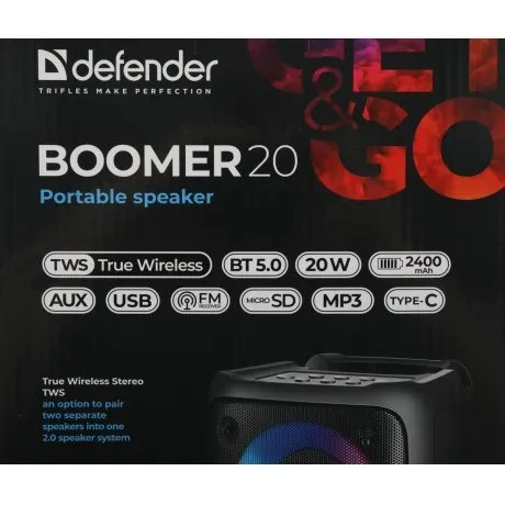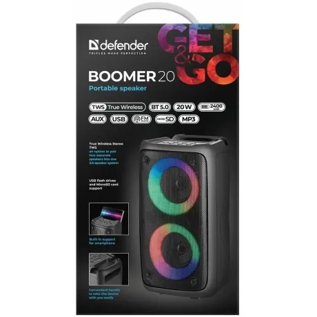 Описание товара Портативная акустика Defender BLACK BOOMER 20 (65820)