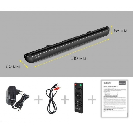 Саундбар Ginzzu GM-507 это компактная и элегантная модель, прекрасно дополняющая образ современных тонких экранов. Саундбар прекрасно смотрится как перед телевизором на тумбе, так и прикрепленный к стене под телевизором. Крепление есть в каждом комплекте саундбара.