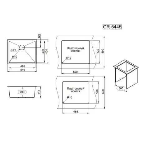 Описание товара Кухонная мойка GRANULA (5445U, ЗОЛОТО САТИН)