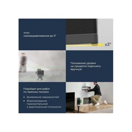 лазерный уровень hoto laser level 3*360 обеспечивает полное покрытие в трех плоскостях, имеет авто-выравнивание и может работать до 12 метров без приемника.